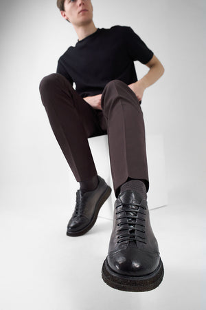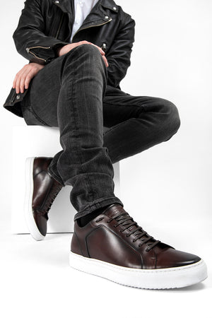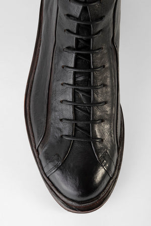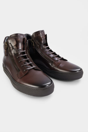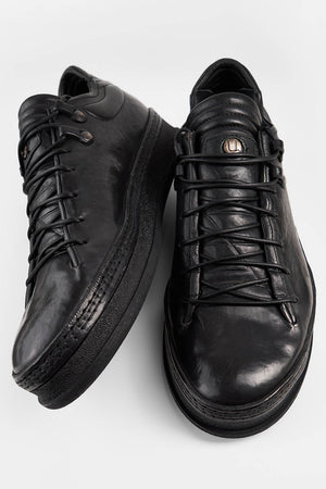 Masterfully crafted, our patina runners are uniquely designed to cater for both smart and casual outings. Marble at the handcrafted folded edges, contrasting napa leather padded ankles or eye-catching hiking-inspired hooks of our styles. Uncompromising charisma and sophistication in our runner collection.