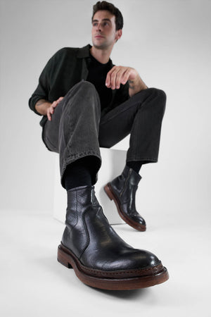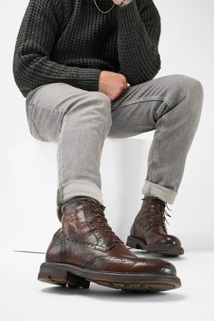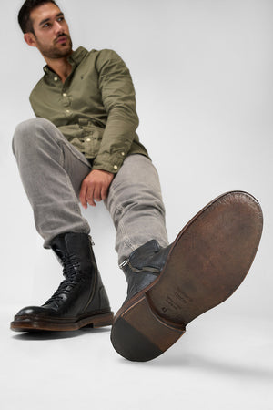 Formidable lines, first quality leather masterfully distressed and the most amazing outsoles that Italian craftmanship can create, our elevated military boots blend tradition and modernity, powerful looks and uncompromising attention to details.