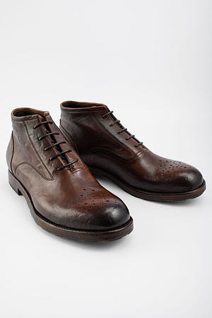 ASTON cigar-brown high chukka boots.