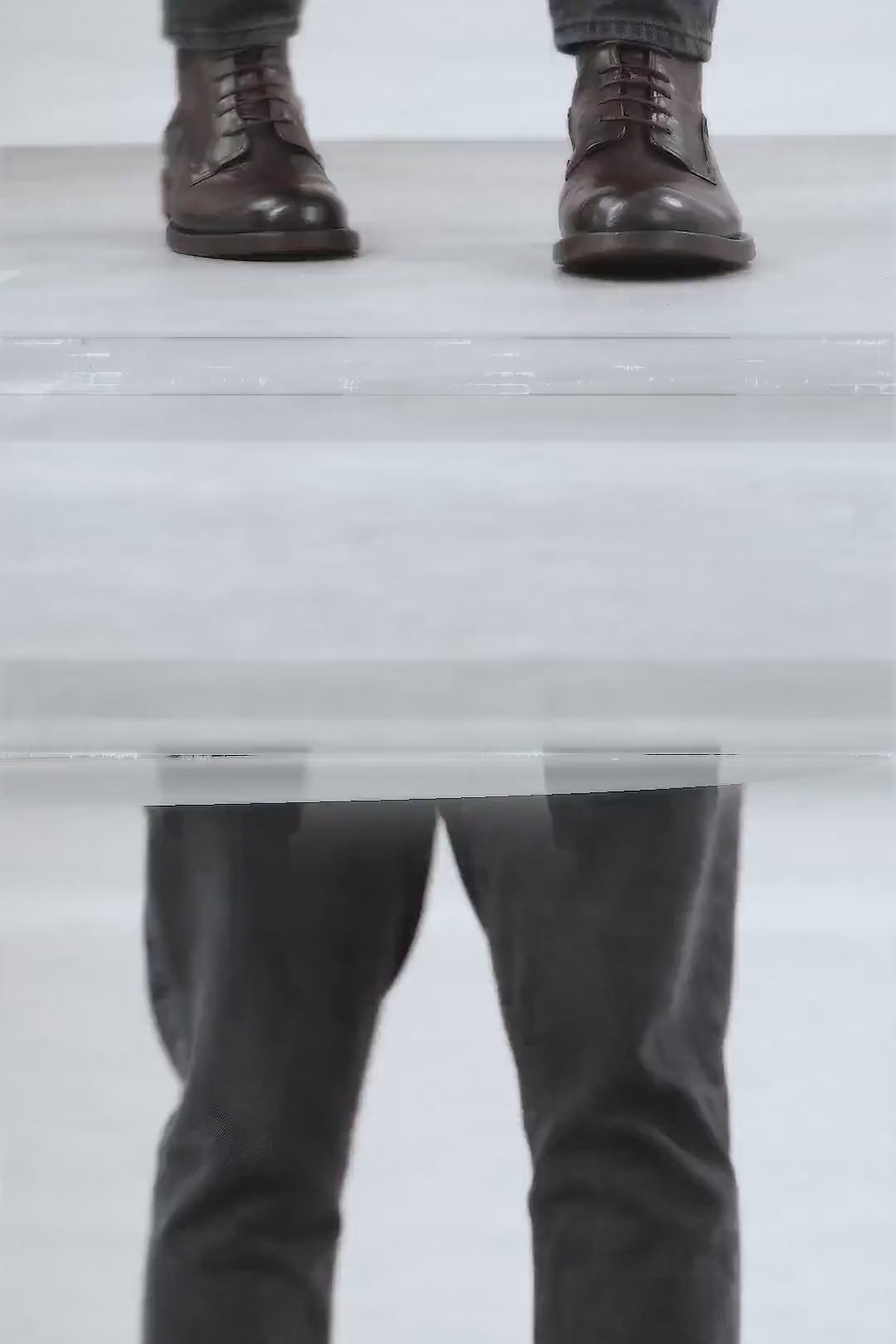 To create a distressed, urban look, this style also undergoes an exclusive antiquing process called stone washing, consisting of washing the shoe in open washing machines filled with water and pumice stones. The shades of uneven intensity are then emphasised through careful waxing and brushing.