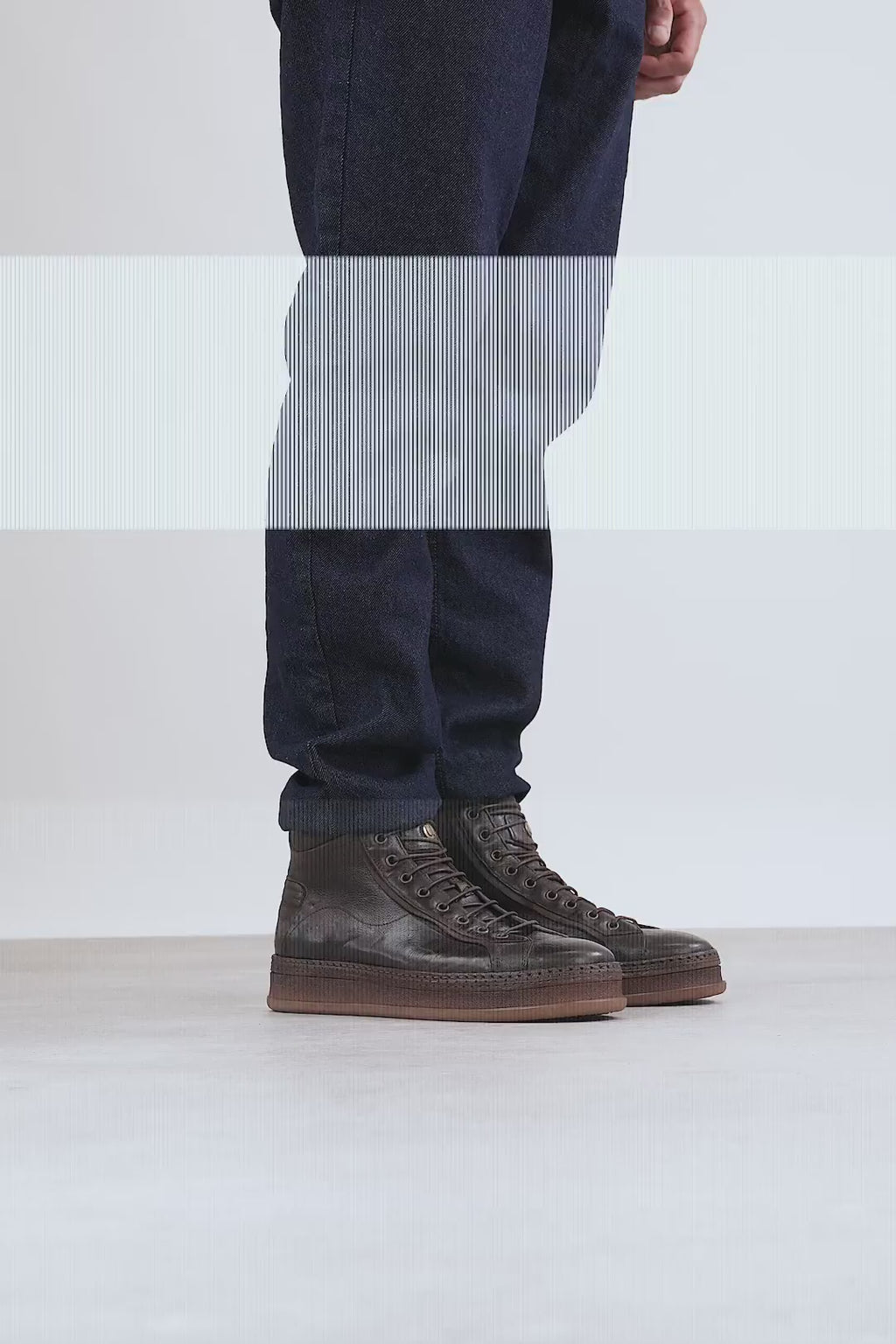 To create a distressed and urban look, this style also undergoes an exclusive antiquing process called stone washing, consisting of washing the shoe in open washing machines filled with water and pumice stones.
