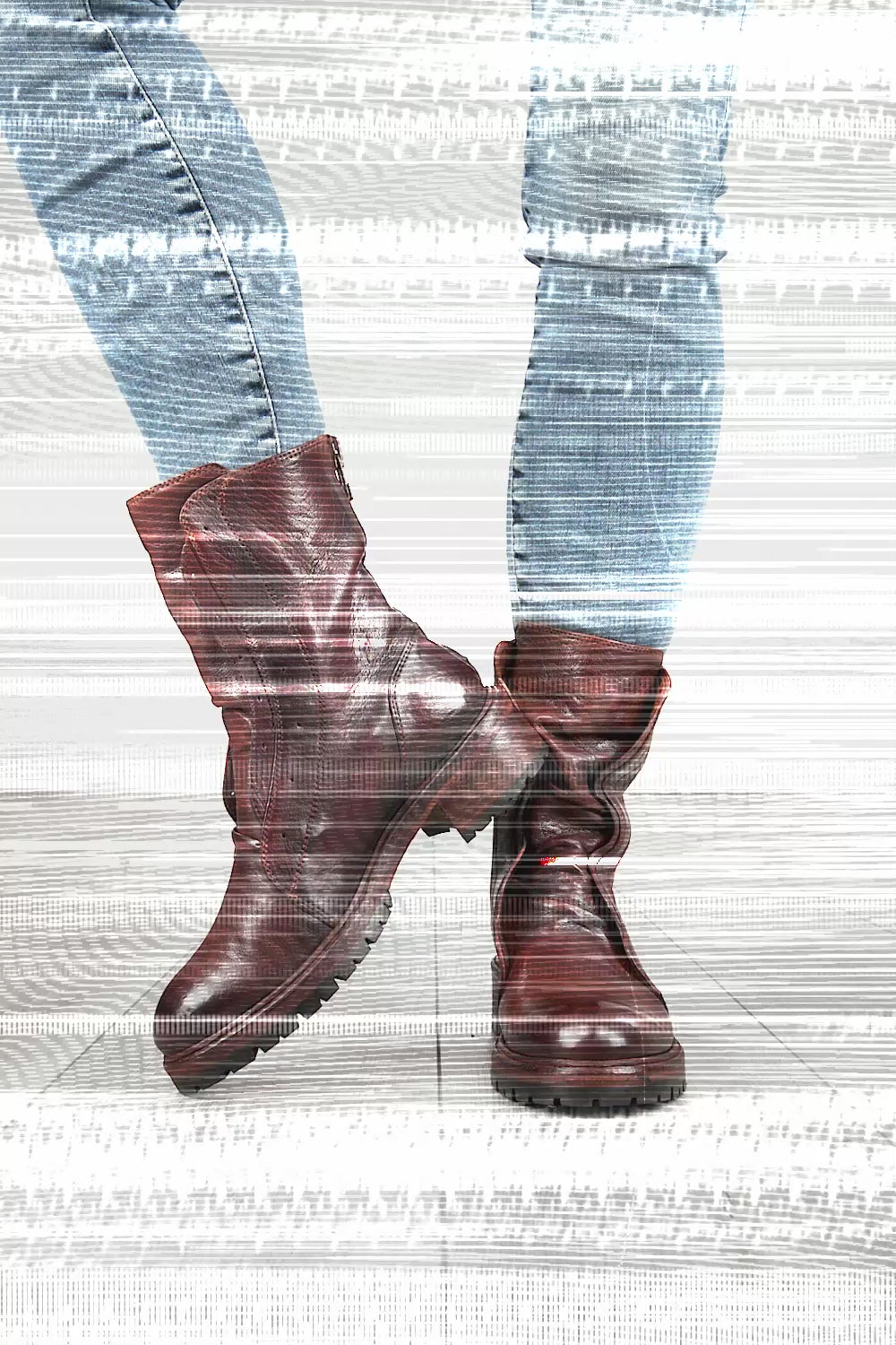 To create a distressed, urban look, this style also undergoes an exclusive antiquing process called stone washing, consisting of washing the shoe in open washing machines filled with water and pumice stones. The shades of uneven intensity are then emphasised through careful waxing and brushing.