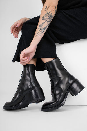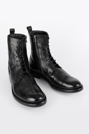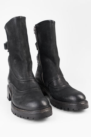 Functional, hard-wearing and all attitude, this is the Untamed Street take on the classic biker boots. The utilitarian design of the full-grain buffalo leather upper has a strong outdoor feel; buckles and zippers ensure a more fitted silhouette and ease to wear without compromising any of the signature elements of this style. Lace-up, zipped or laceless, low or high, colourful or black, sure our extraordinary biker boots can suit your next outfit.
