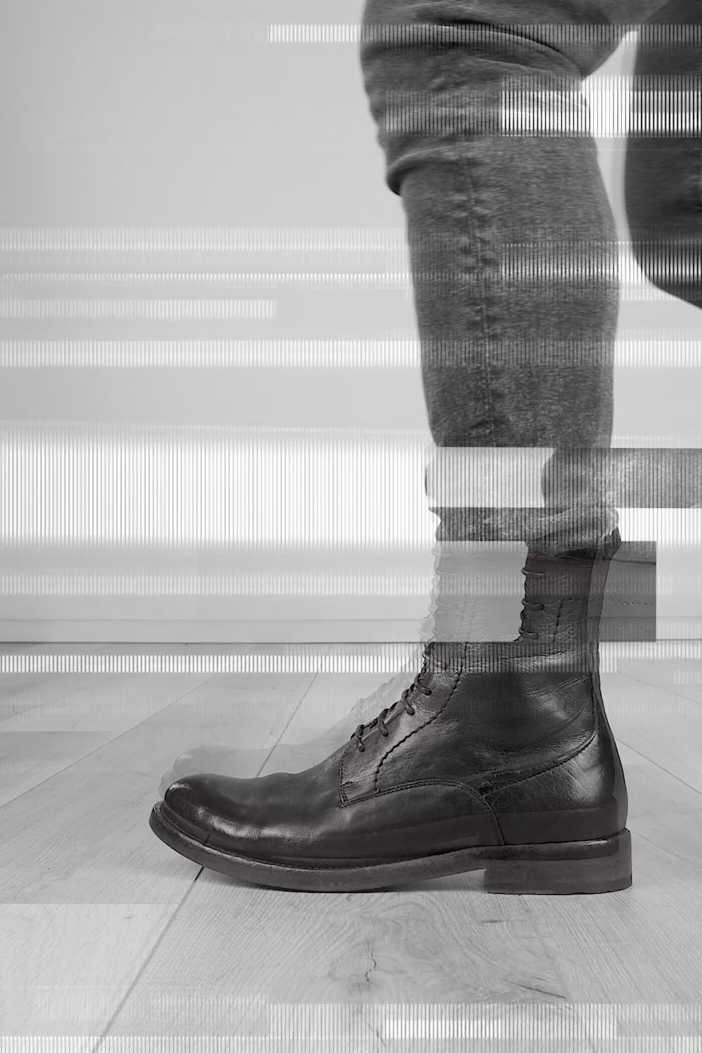 To create a distressed, urban look, this style also undergoes an exclusive antiquing process called stone washing, consisting of washing the shoe in open washing machines filled with water and pumice stones. The shades of uneven intensity are then emphasised through careful waxing and brushing.