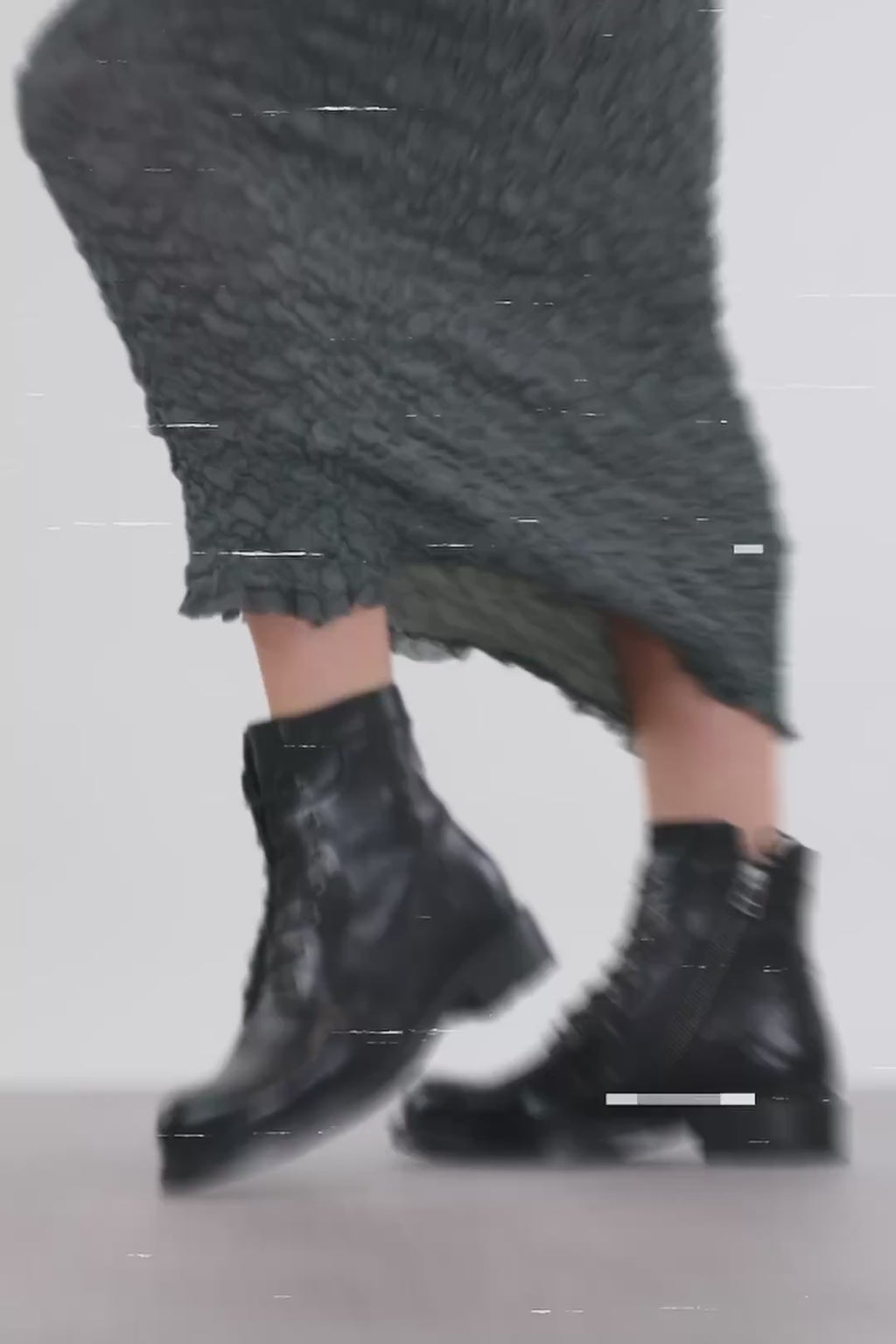 To create a distressed, urban look, this style also undergoes an exclusive antiquing process called stone washing, consisting of washing the shoe in open washing machines filled with water and pumice stones. The shades of uneven intensity are then emphasised through careful waxing and brushing.