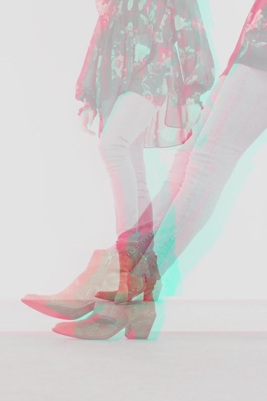 The elegant flowery inlaid work of the upper, emphasised by brass studs, and a pointy toe add a western touch to these unconventional urban booties.