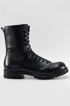 A rebellious and vintage take on military footwear, these mid-calf boots are robust, comfortable and resolute. The upper is cut from luxurious Italian calf leather, and Ideal-stitched to the CAMDEN signature St. Moritz lug sole; fine stitching along the edges, metal eyelets and hooks for ease of lacing make these boots a seasonless wardrobe staple.