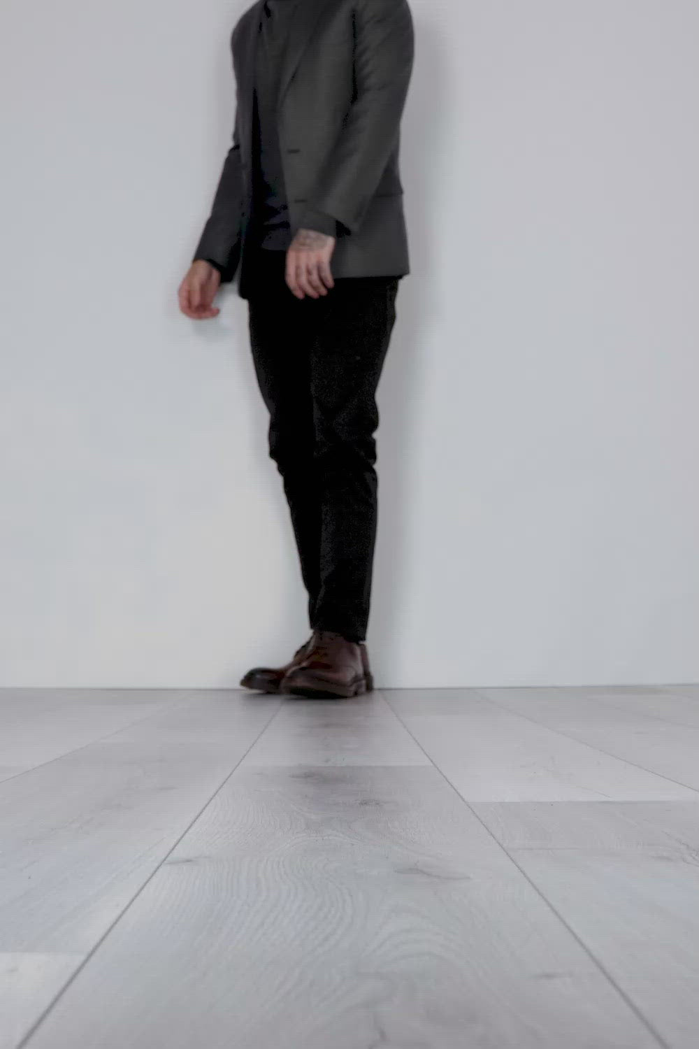 To create a distressed, urban look, this style also undergoes an exclusive antiquing process called stone washing, consisting of washing the shoe in open washing machines filled with water and pumice stones. The shades of uneven intensity are then emphasised through careful waxing and brushing.