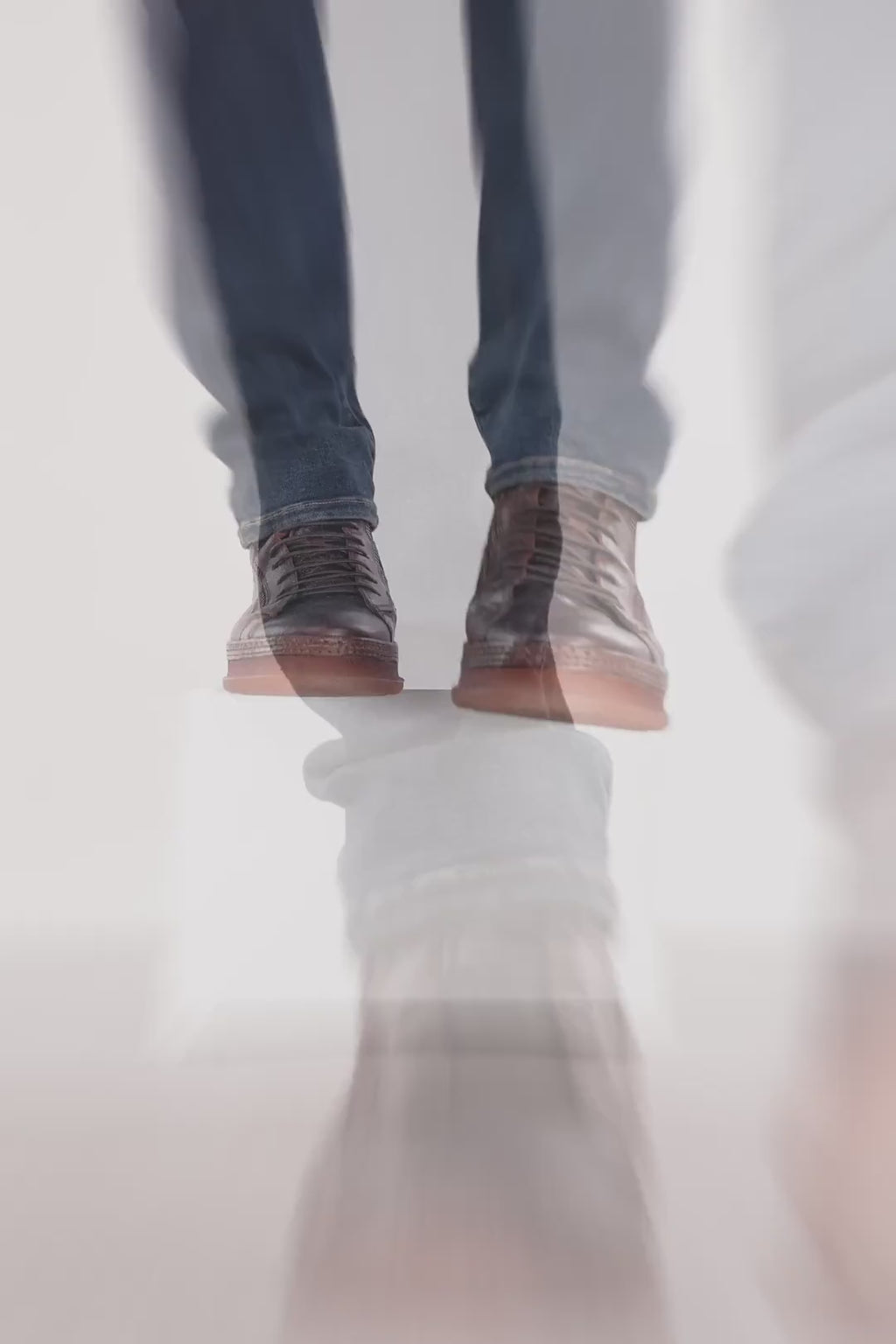 To create a distressed and urban look, this style also undergoes an exclusive antiquing process called stone washing, consisting of washing the shoe in open washing machines filled with water and pumice stones.