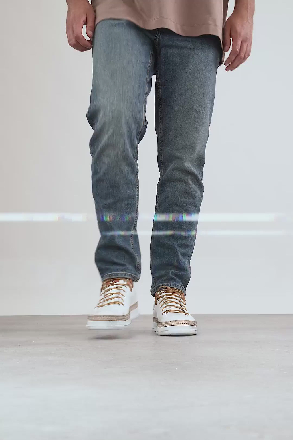 To create a distressed, urban look, this style also undergoes an antiquing process, consisting of lightly brushing the white upper to give these beautiful sneakers a urban and contemporary flare.